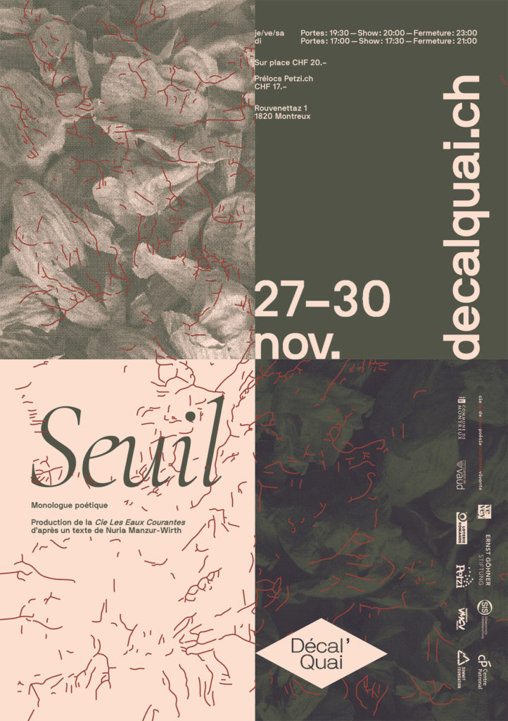 Écriture, jeu, voix : Nuria Manzur-Wirth | Mise en scène : Sébastien Dupperet | Lumière : Tiago Branquino | Musique : Luca Manco | Son : Romain Equey | Regard extérieur : Prune Beauchat | Administration : Alain Wirth | Production, administration : Deborah Perez-Vazquez | Production : Les Eaux Courantes | Coproduction : Quai Son | Partenariat artistique : Décal’Quai